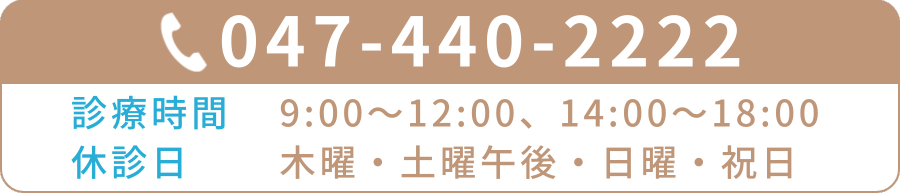 TEL:047-440-5151(直通) - 受付時間:8:40~12:00、13:55~17:30