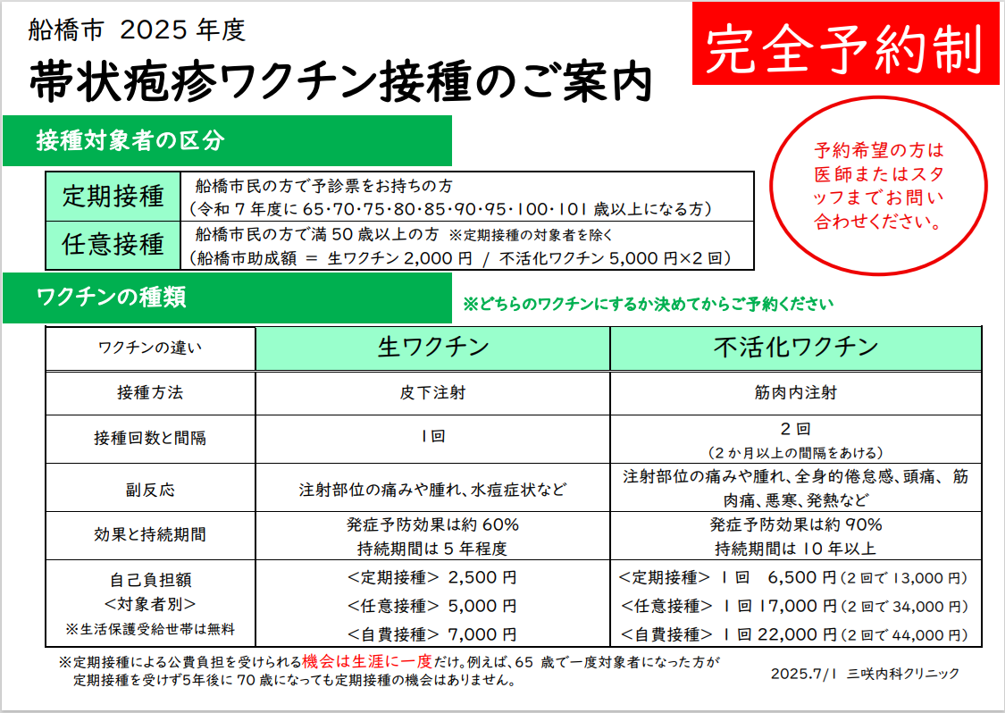 2025年7月1日から帯状疱疹ワクチン接種を開始いたしました。
