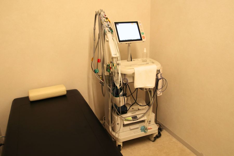 心電図計では狭心症や不整脈など心臓の電気的な動きを確認します。血圧脈波検査では血管の硬さや動脈の状態を評価し、動脈硬化性疾患の早期発見に有用です。